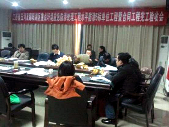 2012年1月17日,江西省五河及鄱陽(yáng)湖區(qū)重點(diǎn)圩堤應(yīng)急防滲工程建設(shè)項(xiàng)目部在鄱陽(yáng)縣主持召開了水平防滲5標(biāo)單位工程暨合同工程完工驗(yàn)收會(huì),并順利通過了單位工程暨合同工程完工驗(yàn)收。公司工程部彭和平副經(jīng)理參加了驗(yàn)收會(huì)。