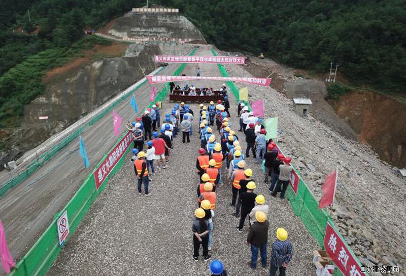該工程是一座混凝土面板堆石壩,壩高47m,大壩填筑工程量42m3,大壩于2021年3月5日開始填筑,2021年6月30日填筑完成。大壩填筑完成后,得到了建設單位、監理單位及總包單位的祝賀與肯定。該工程屬貴州省“鄉鄉有穩定水源”項目,年供水量250.8萬m3,建成后可為安樂溪鄉集鎮及農村20000余人提供安全穩定供水和21670畝農田灌溉用水以及將極大緩解當地缺水和安全飲水問題,意義重大。施工項目部將繼續堅持“科學管理、精心組織”理念,嚴格按設計和規范要求,在確保安全和質量的前提下加快施工進度,為安樂溪人民盡早提供安全水、干凈水及改善供水目標,確保在合同工期以內按時、按質、按量盡早建成交付建設單位投入使用。集團副總裁胡鴻煌參加大壩封頂儀式。
