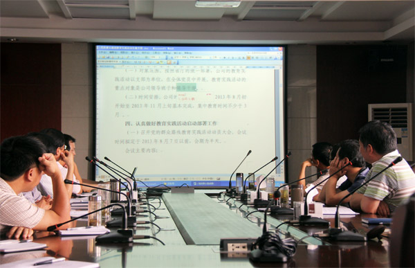 2013年7月29日,中共江西省水利水電建設有限公司委員會召開了黨的群眾路線教育實踐活動專題工作會(擴大)會,會議討論了公司教育實踐活動方案,以及對具體實施工作進行部署。公司黨委委員、高層管理人員以及教育實踐活動領導小組辦公室成員參加了會議。