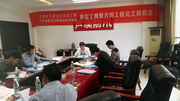 集團(tuán)資訊 2017年4月19日蘆溪縣五河治理防洪工程項(xiàng)目部在蘆溪縣主持召開了江西省五河治理防洪工程蘆溪縣袁河宣風(fēng)鎮(zhèn)段防洪項(xiàng)目單位工程暨合同工程完工驗(yàn)收會議。蘆溪縣五河治理防洪工程項(xiàng)目部、江西省水利規(guī)劃設(shè)計(jì)研究院、江西省建洪工程監(jiān)理咨詢有限公司、江西省水利水電建設(shè)有限公司、蘆溪縣宣風(fēng)鎮(zhèn)鎮(zhèn)人民政府和銀河鎮(zhèn)人民政府等單位代表參加了本次驗(yàn)收會議,并成立了單位工程暨合同工程完工驗(yàn)收工作組,萍鄉(xiāng)市水工程建設(shè)監(jiān)督管理站列席了本次會議。