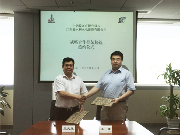 集團(tuán)資訊2017年5月15日,江西省水利水電建設(shè)有限公司與中鋼設(shè)備有限公司戰(zhàn)略合作框架協(xié)議簽約儀式在北京舉行。公司董事長王元旦與中鋼設(shè)備有限公司總經(jīng)理王建代表雙方簽署了戰(zhàn)略合作框架協(xié)議。公司海外公司副總經(jīng)理熊昊冠和中鋼設(shè)備能源與基礎(chǔ)設(shè)施部副部長閆永軍、國際市場部副部長王思奇、市場主管姬曉軍參加簽字儀式。王建表示中鋼公司有著海外平臺(tái)優(yōu)勢,江西水建擁有水利水電、房建和市政領(lǐng)域的技術(shù)優(yōu)勢,希望雙方以此次戰(zhàn)略合作簽署為契機(jī),借助各自在資源、業(yè)務(wù)等方面的綜合優(yōu)勢,在巴基斯坦市場以及其他國別市場攜手共進(jìn),推進(jìn)重點(diǎn)項(xiàng)目落地,共謀發(fā)展。公司董事長王元旦對(duì)中鋼設(shè)備的支持表示感謝。他表示此次合作將會(huì)是一個(gè)友好的開端,真誠希望雙方在國家“一帶一路”戰(zhàn)略指引下進(jìn)一步加深交流,探索多方位、深層次合作,實(shí)現(xiàn)互利共贏。