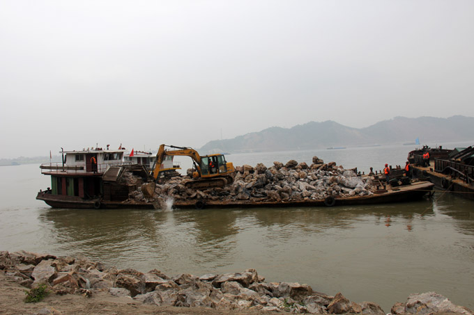 江心洲拋石施工現場