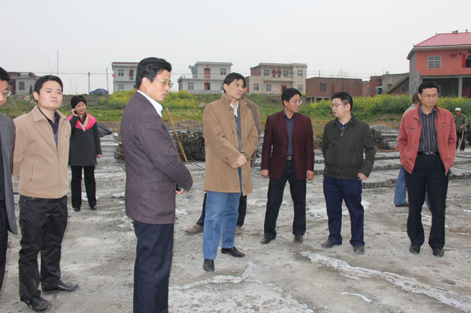 孫廳長在九江縣江心洲察看砼四面六邊框架預制場