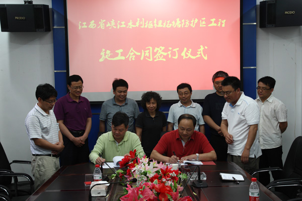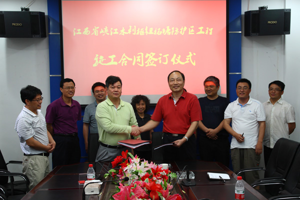 日前,我公司收到江西省峽江水利樞紐工程建設(shè)總指揮部中標(biāo)通知,成功中標(biāo)峽江水利樞紐工程柘塘防護(hù)工程。5月11日上午,公司董事長總經(jīng)理王元旦代表公司與業(yè)主簽訂施工合同協(xié)議書,合同額為8741.44萬元。