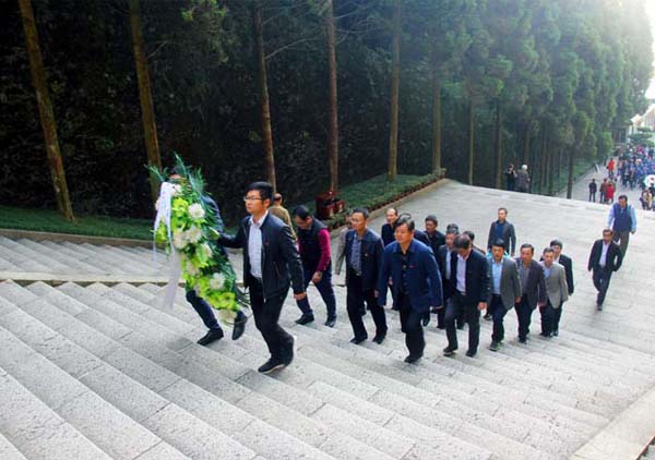 當日上午,參加學習的全體人員,懷著對革命先烈崇敬的心情來到井岡山革命烈士陵園,向革命先烈敬獻了花籃。隨后,全體黨員在革命烈士紀念堂前面對黨旗重溫了入黨誓詞,使每一名黨員再次感受到了恪守承諾、與時俱進,不忘所肩負的責任、義務和使命。全體人員還參觀了紀念堂陳列室、碑林、雕塑園、紀念碑,更深入地了解了革命烈士的生平及英勇事跡,感受到了革命英烈的不朽功績。