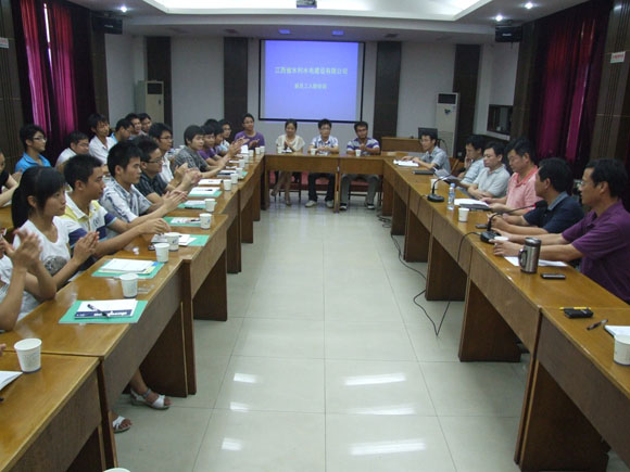 公司董事長(zhǎng)、總經(jīng)理王元旦和三總師與新員工舉行座談會(huì)