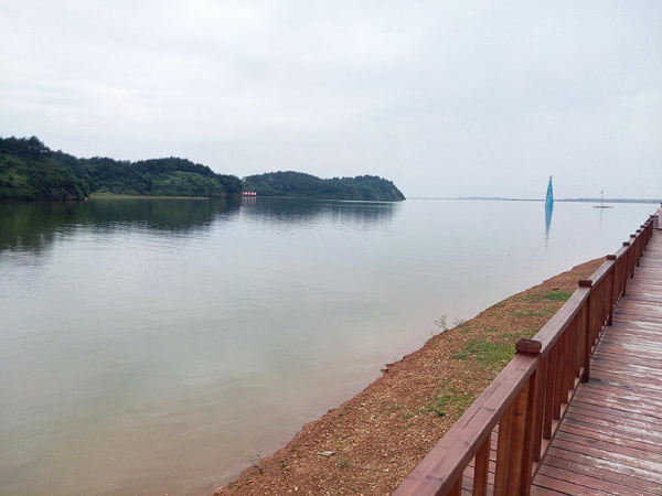 告別饒娥像,我們沿著一條石子小道走回了來時(shí)的路,天色漸漸昏暗,回望鄱陽湖,青灰色的湖面,墨綠色的樹林,猶如一美人蓋上了輕紗,朦朦朧朧卻更添羞澀。我不由感嘆,鄱陽湖美景在不同時(shí)段觀看,便有不同的意境,而其中滋味,只有來過方知。