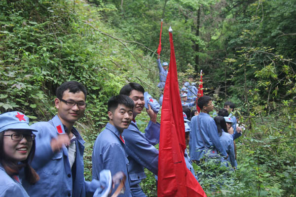 抵達井岡山后,全體人員立刻進入三灣隊伍整編環節,推薦隊長、政委和旗手,設計隊名、口號和LOGO。很快“飛龍隊”、“戰鷹隊” 等名字紛紛閃亮登場?!褒堈魅f里,所向披靡”、“ 群狼行千里,星火可燎原”等口號一次又一次迎來全場的陣陣歡呼。隨后進行了“穿越叢林、突破封鎖線、匍匐前進、火線救援”4個比賽項目,這些比賽項目,增強了大家的團隊意識,每名成員充分認識到了團結協作、友愛互助的重要性,使大家在比賽中受到啟發、受到鼓舞、更使大家得到了鍛煉,經受了考驗。