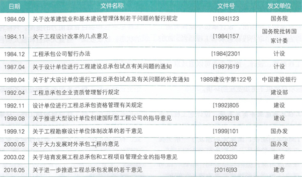 20世紀80年代,我國相關部門就下發文件,要求在設計、施工企業組建開展工程總承包的試點,